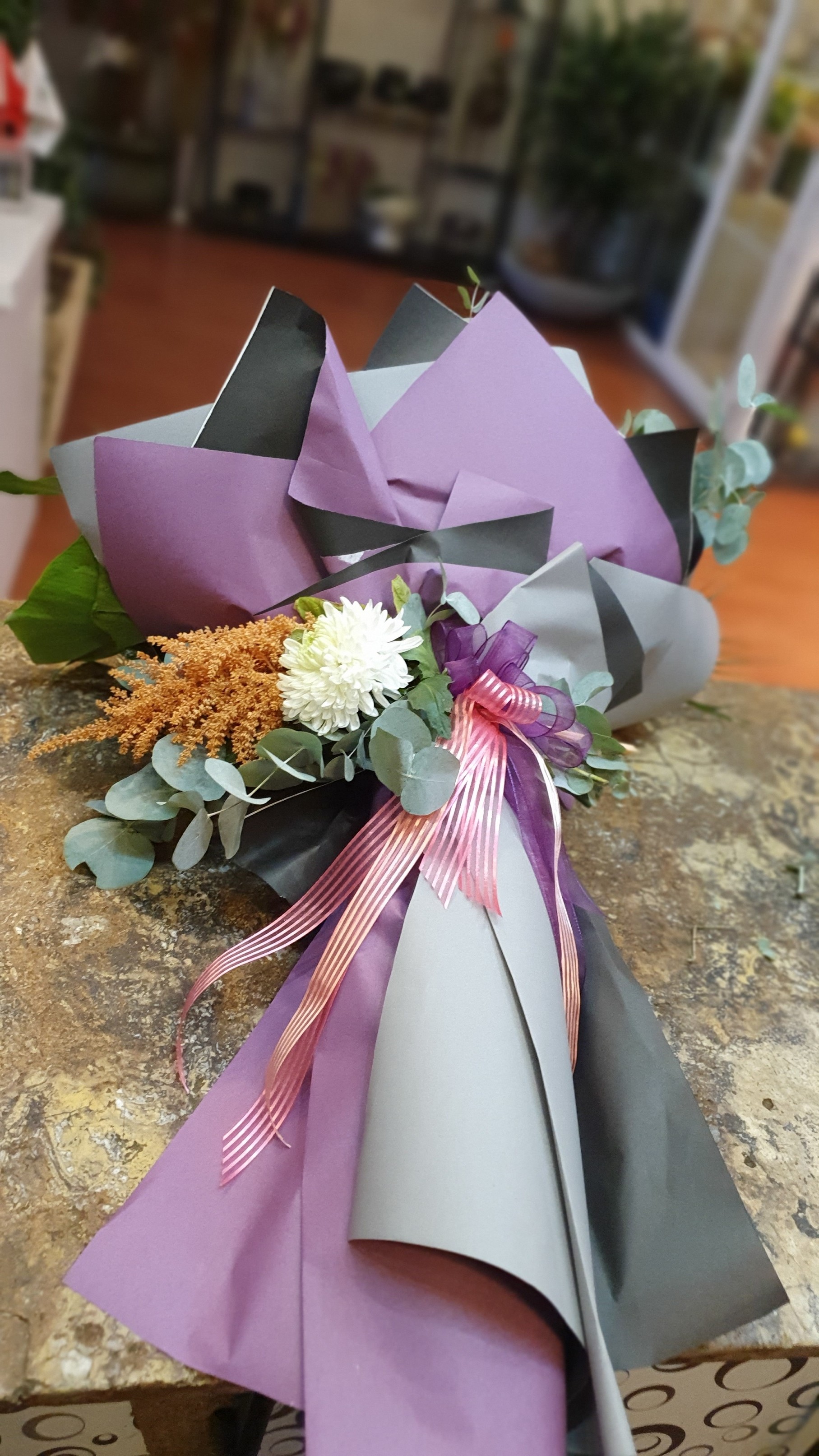 Beyaz Kazabilanka ve ortancadan oluşan buketimiz.